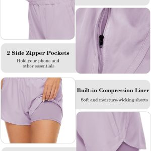 2 Pack Athletic Shorts for Women, Quick Dry Running Shorts with Pockets High Waisted Workout Gym Sports Shorts