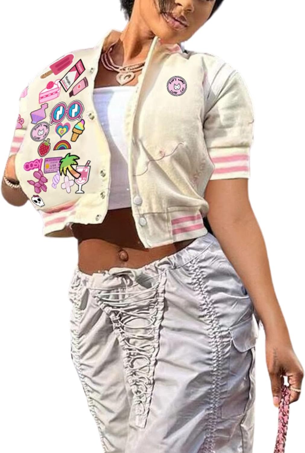 Button Down Shirts for Women Short Sleeve Cropped Varsity Jacket for Women Summer Tops for Women 2024 S-XXL