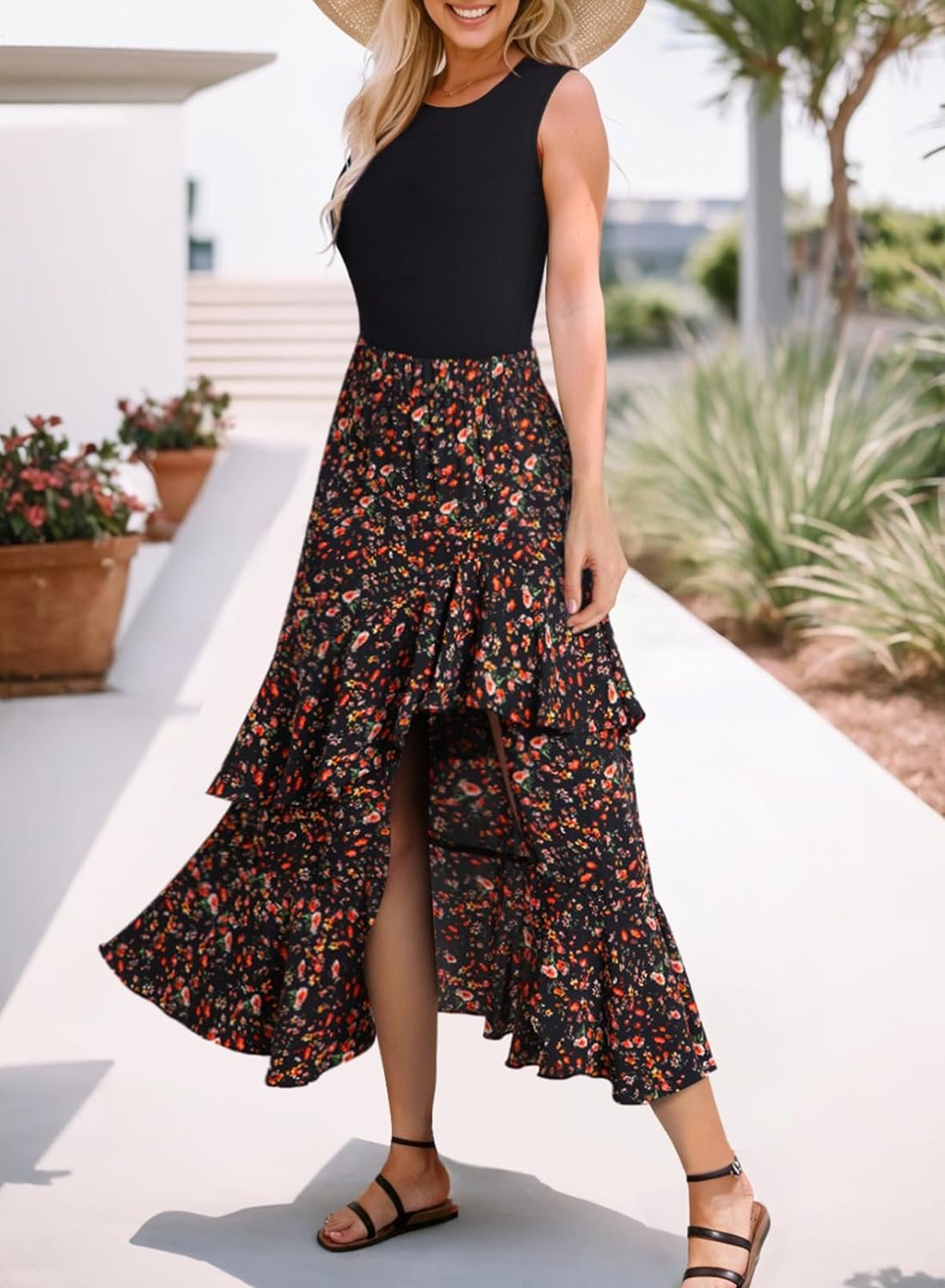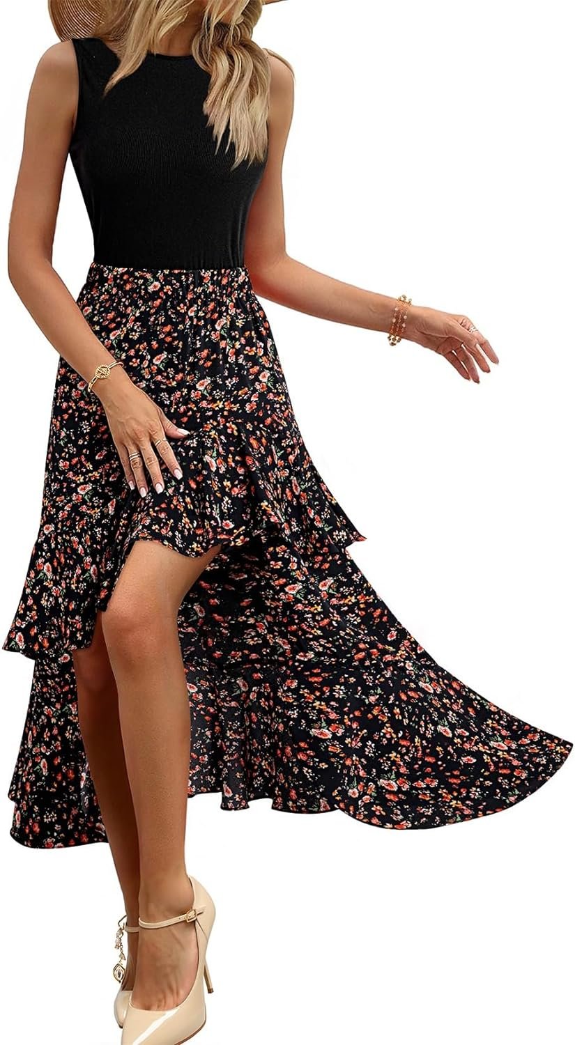 Dokotoo Women’s Summer 2024 Maxi Dress Spaghetti Strap Spring Casual Boho Split Beach Long Flowy Dresses Trendy