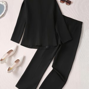 Be the first to review “Elegant Office Pants Set, Belted Lapel Long Sleeve Slim Blazer & High Waist Straight Leg Loose Pants, Women’s Clothing”