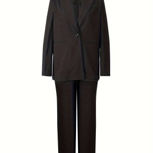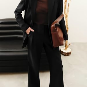 Be the first to review “Elegant Office Solid Color Pants, Single Breasted Lapel Blazer & Straight Leg Loose Simple Pants, Women’s Clothing”