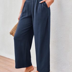Be the first to review “JASAMBAC Women’s Capri Linen Wide Leg Pants Summer Boho Wide Leg Pants Smocked High-Rise Waist Casual Beach Pants with Pocket”