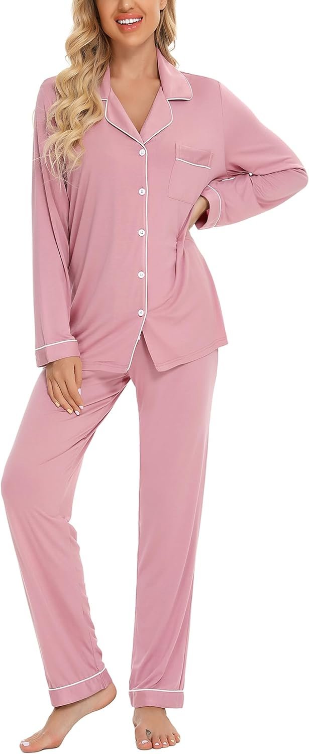 Pajamas Set Long Sleeve Womens Button Down Sleepwear Two Piece Nightwear Soft Pj Lounge Sets S-XXL
