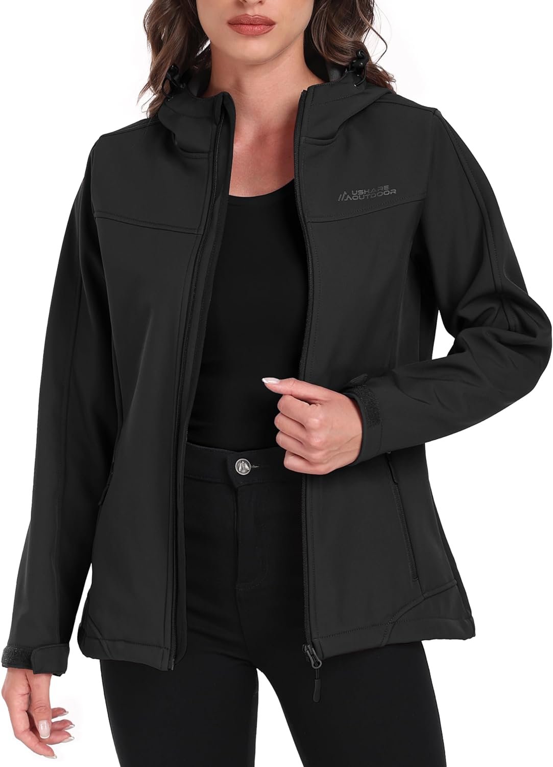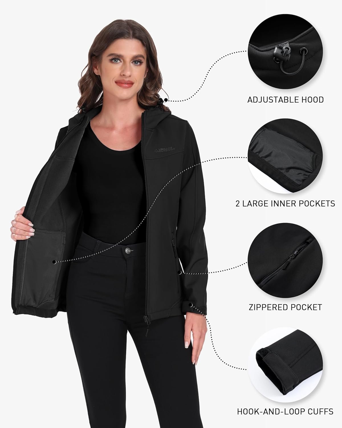 Softshell Jacket Women Lightweight Fleece Lined Rain Jacket Ladies Coats Waterproof with Hood for Outdoor Hiking