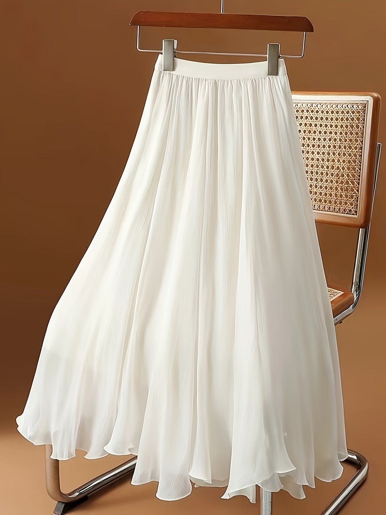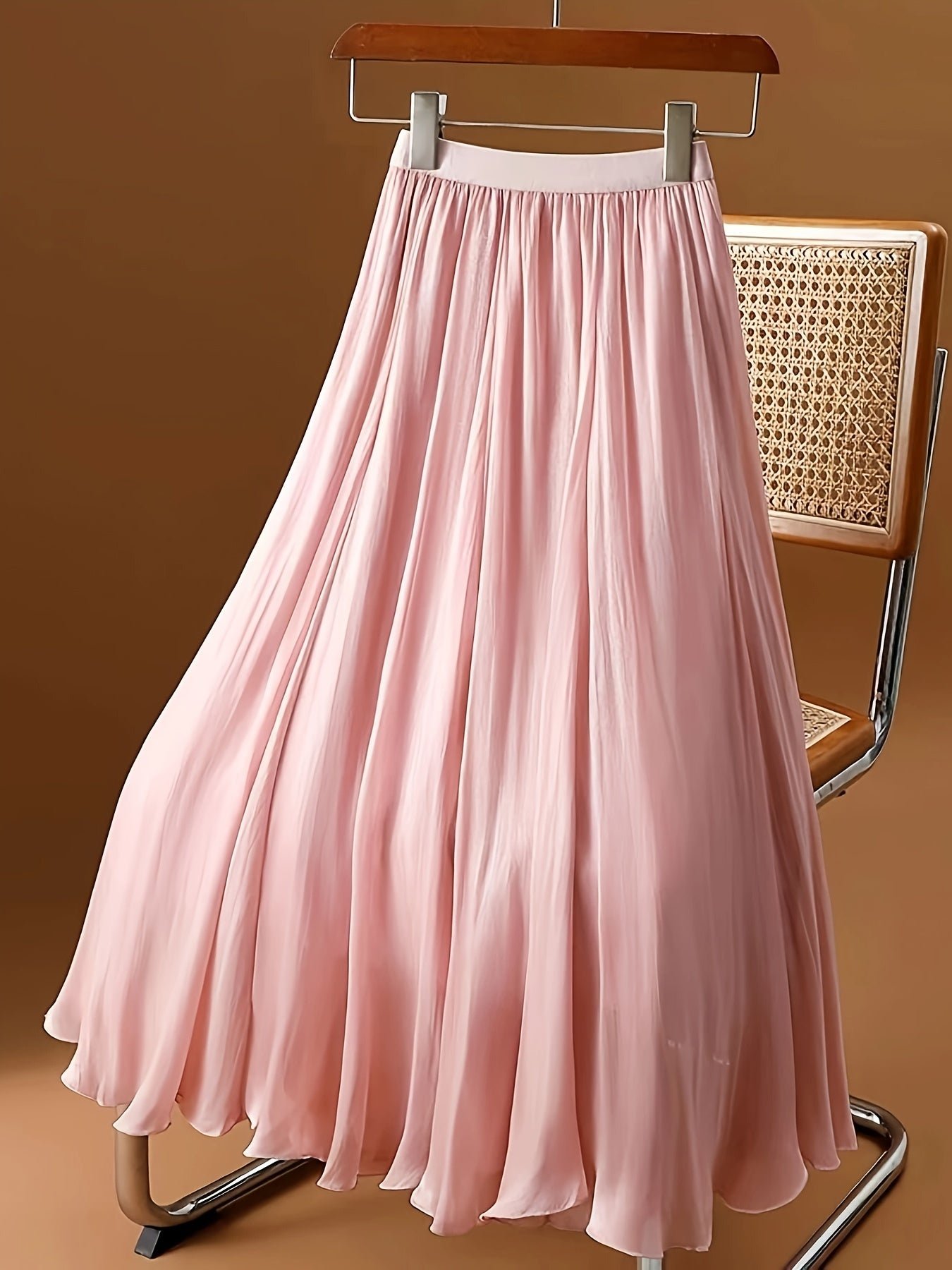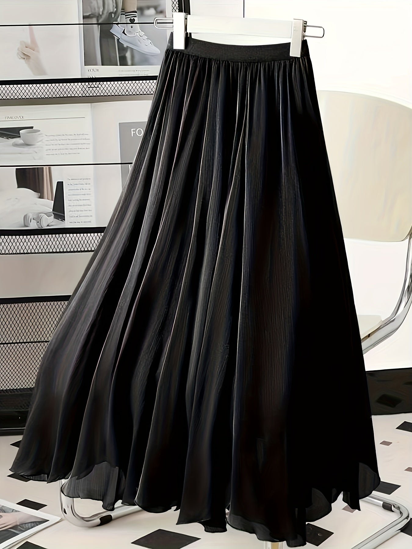 Solid Color Elastic Wais Skirt, Elegant Midi A-line Skirt For Spring & Summer, Women’s Clothing