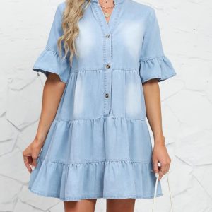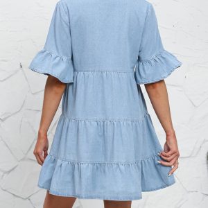 Be the first to review “Women Denim Dresses Casual V Neck Ruffle Short Sleeve Jean Dress Summer Babydoll Dress 2024”