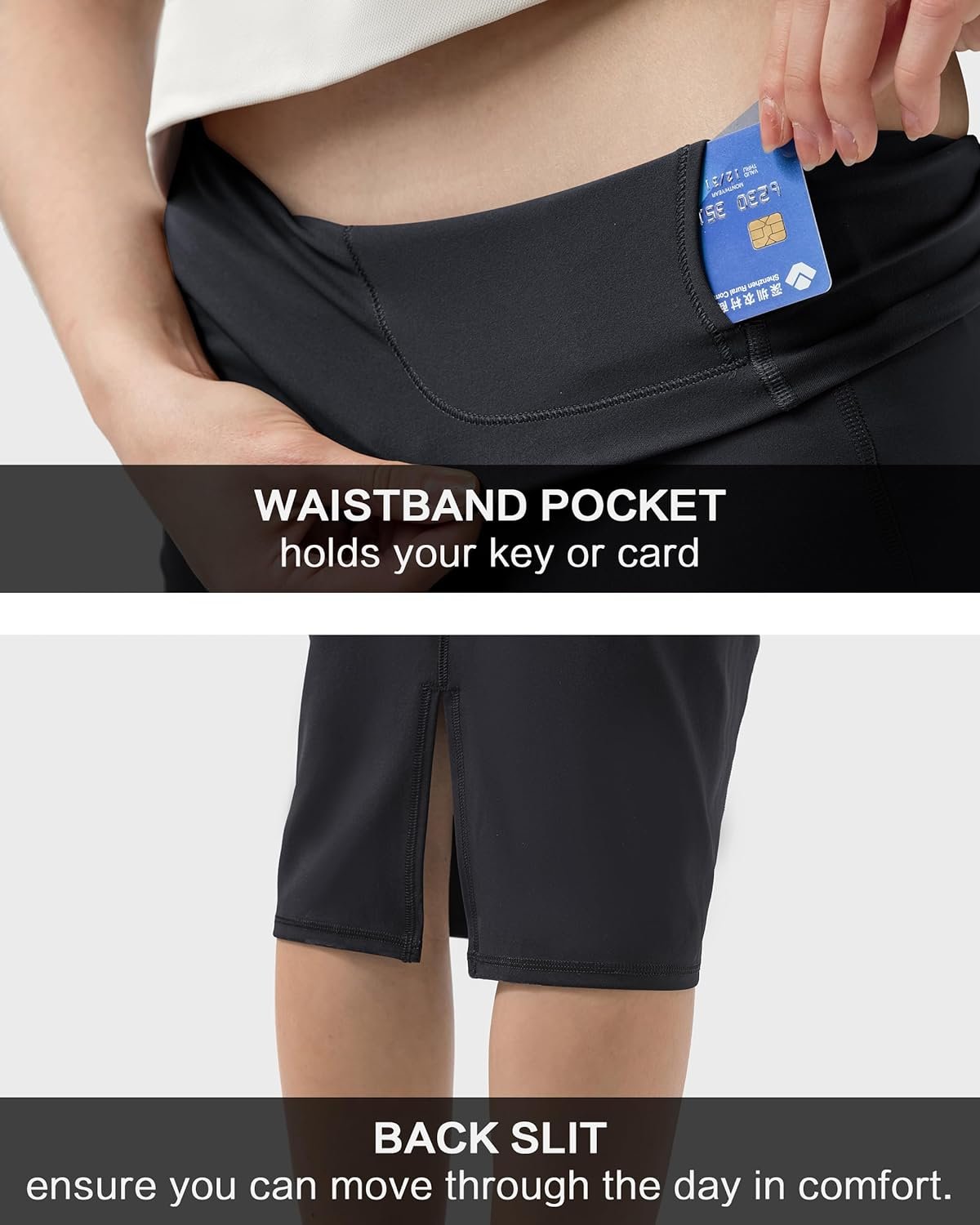 Women Office Work Pencil Skirts Stretchy High Waist Tummy Control Nylon Midi Bodycon Skirts Below Knee Back Slit