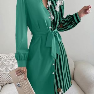 Be the first to review “Womens Button Down Shirt Dresses with Belt Button Up Tunics Long Sleeve Blouse Tops”