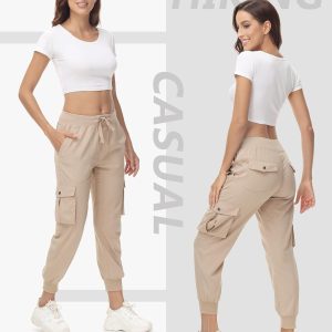 Women’s Cargo Hiking Pants Quick Dry Lightweight Elastic Waist Button Pockets Joggers Athletic Sweatpants Travel Casual