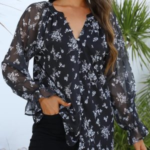 Be the first to review “Womens Casual Boho Floral Print V Neck Long Sleeve Blouses Button Down Shirts Dressy Chiffon Loose Ruffle Tops”