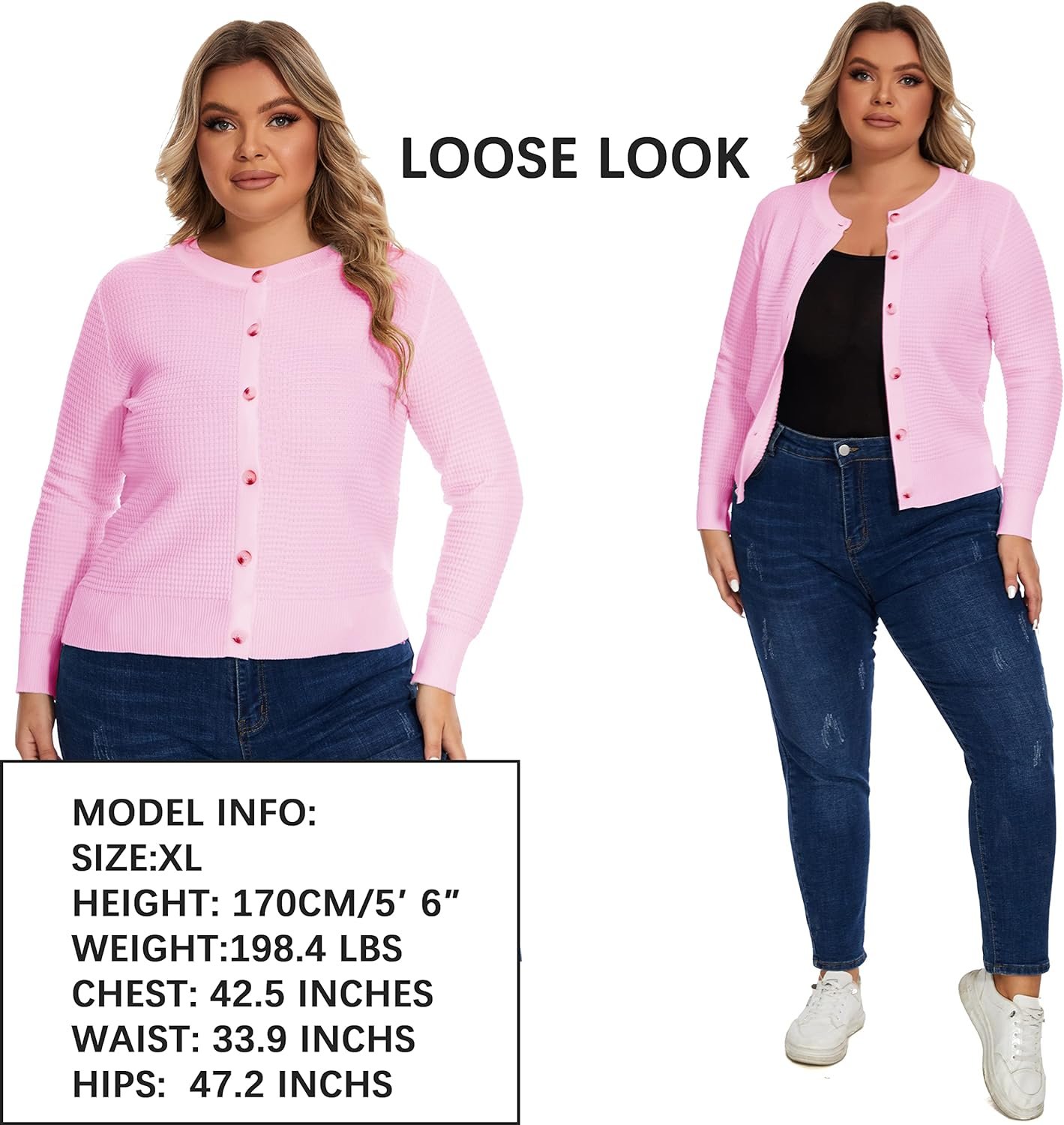 Women’s Crew Neck Button Down Long Sleeve Solid Knit Classic Cardigan Sweater