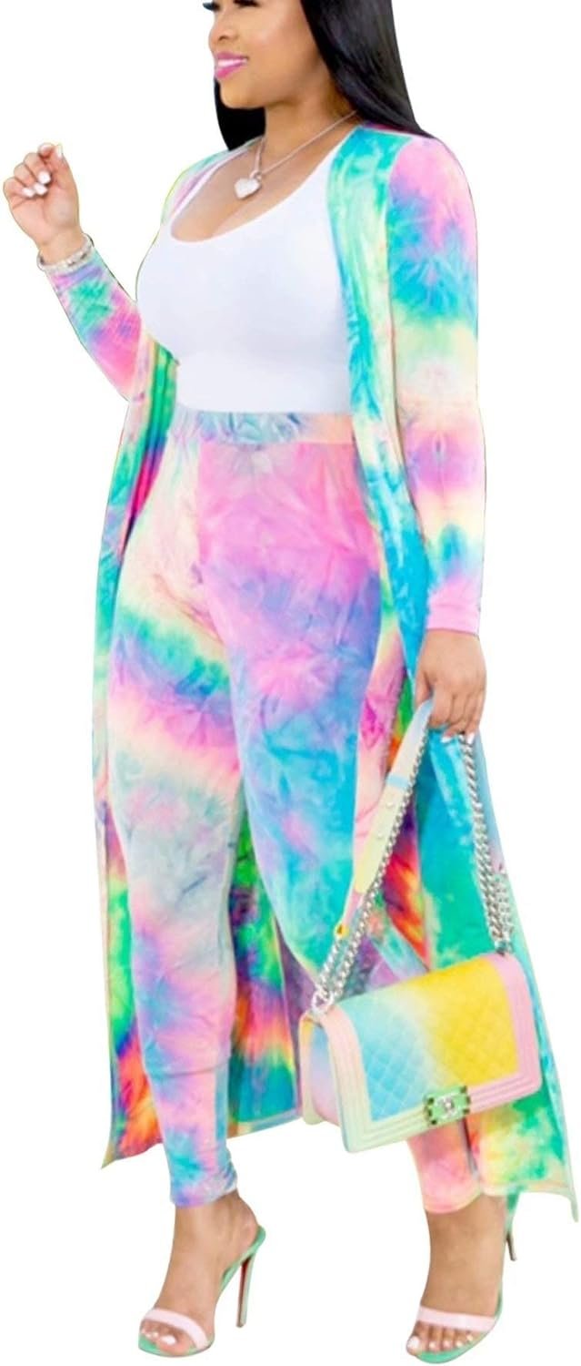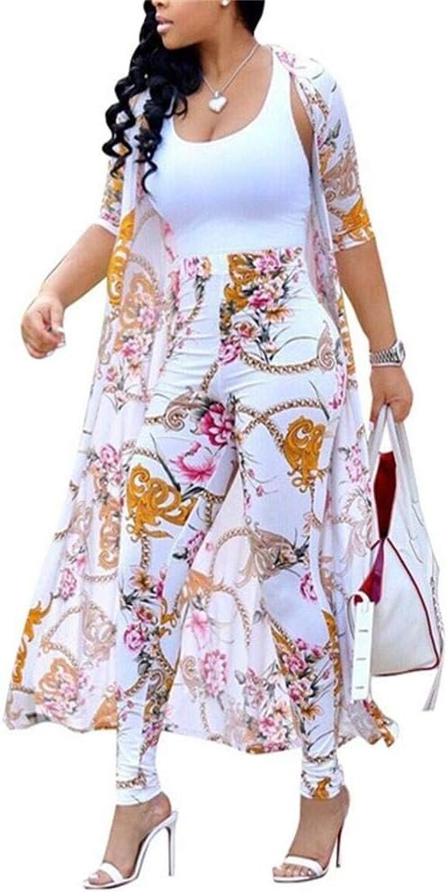 Womens Floral Print Long Sleeve Cardigan Cover up Long Pants 2 Piece Outfits Set