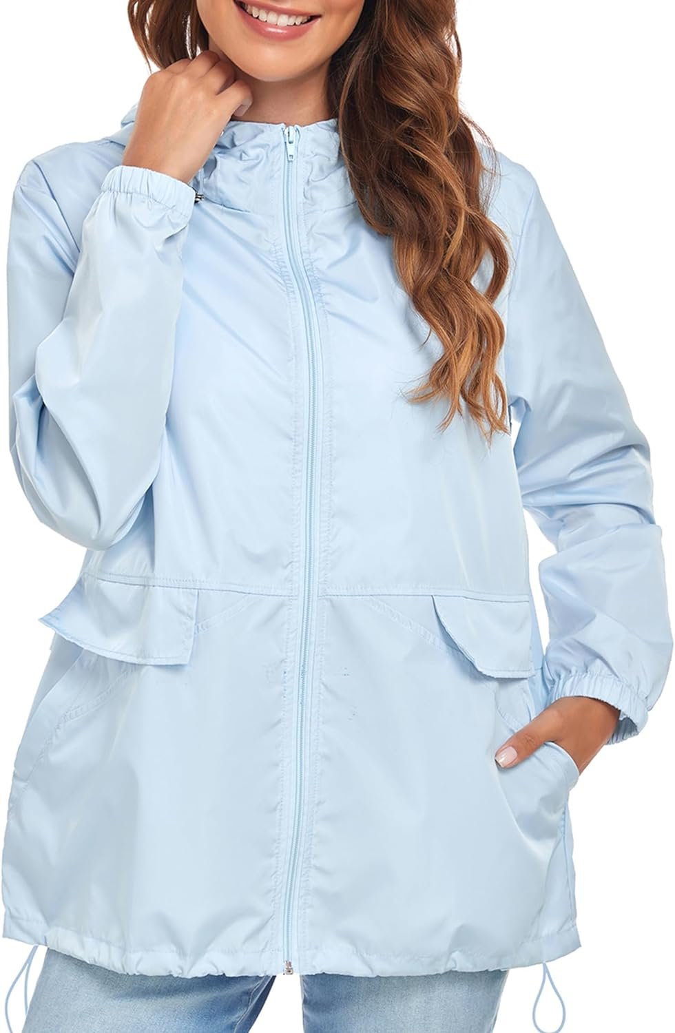 Women’s Lightweight Raincoat Waterproof Packable Outdoor Windproof Hooded Active Rain Jacket S-XXL