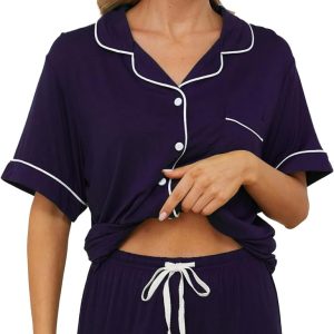 Womens Pajama Sets Short Sleeve Sleepwear Soft Button Down Nightwear Lounge Pj Set XS-XXL
