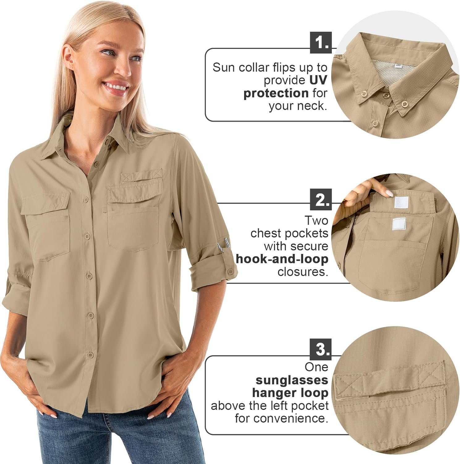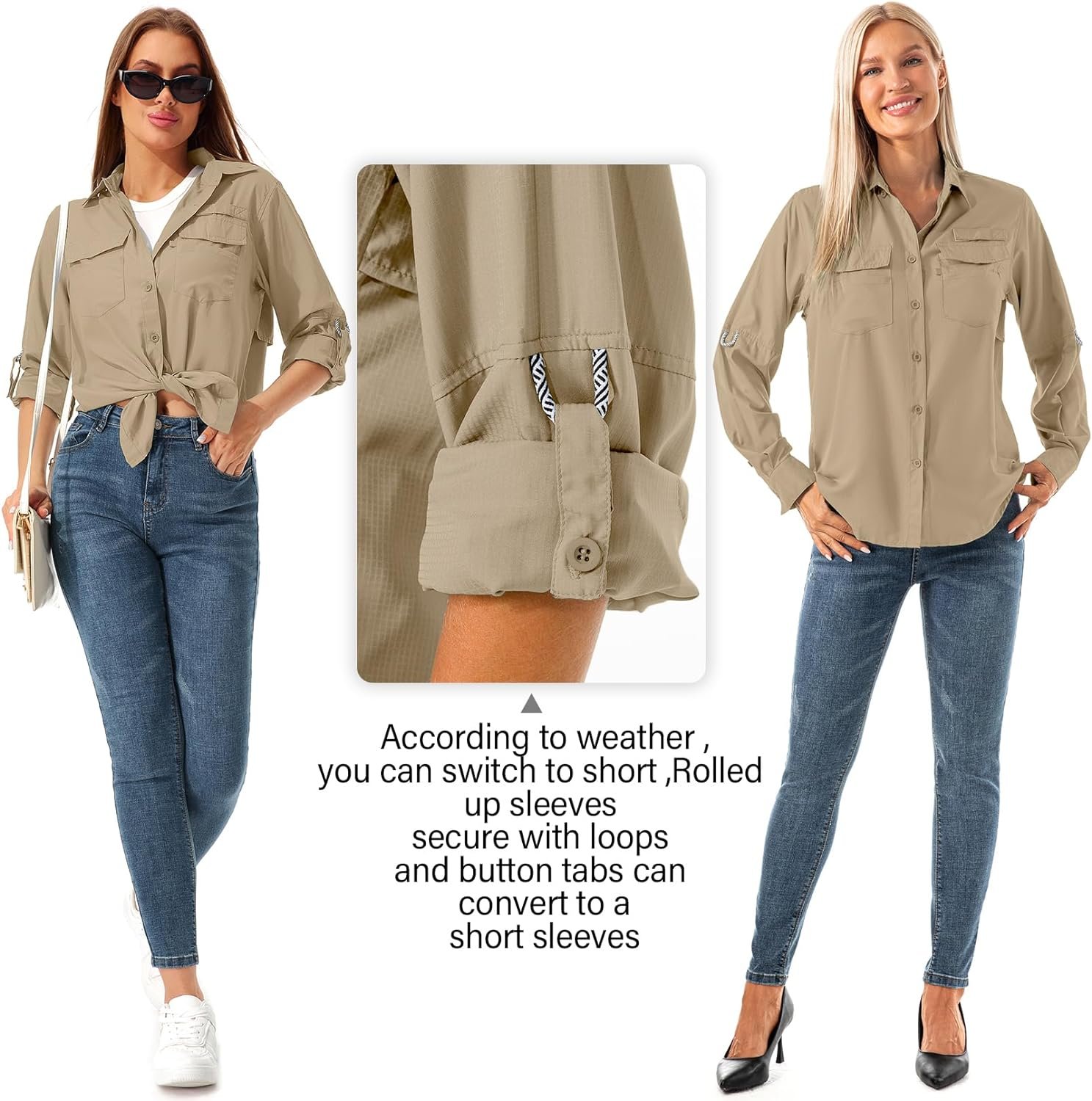 Women’s Quick Dry Sun UV Protection Convertible Long Sleeve Shirts for Hiking Camping Fishing Sailing