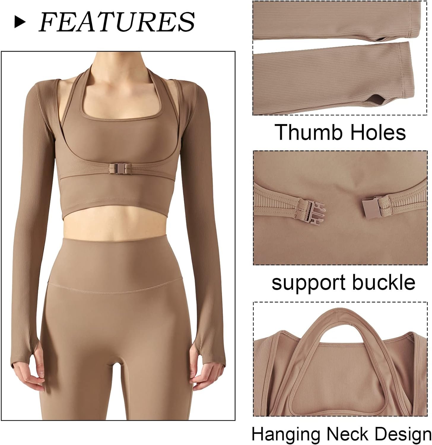 Women’s Stretch Cutout Yoga Sports Jacket Long Sleeve Crop Top T Shirts with Thumb Holes