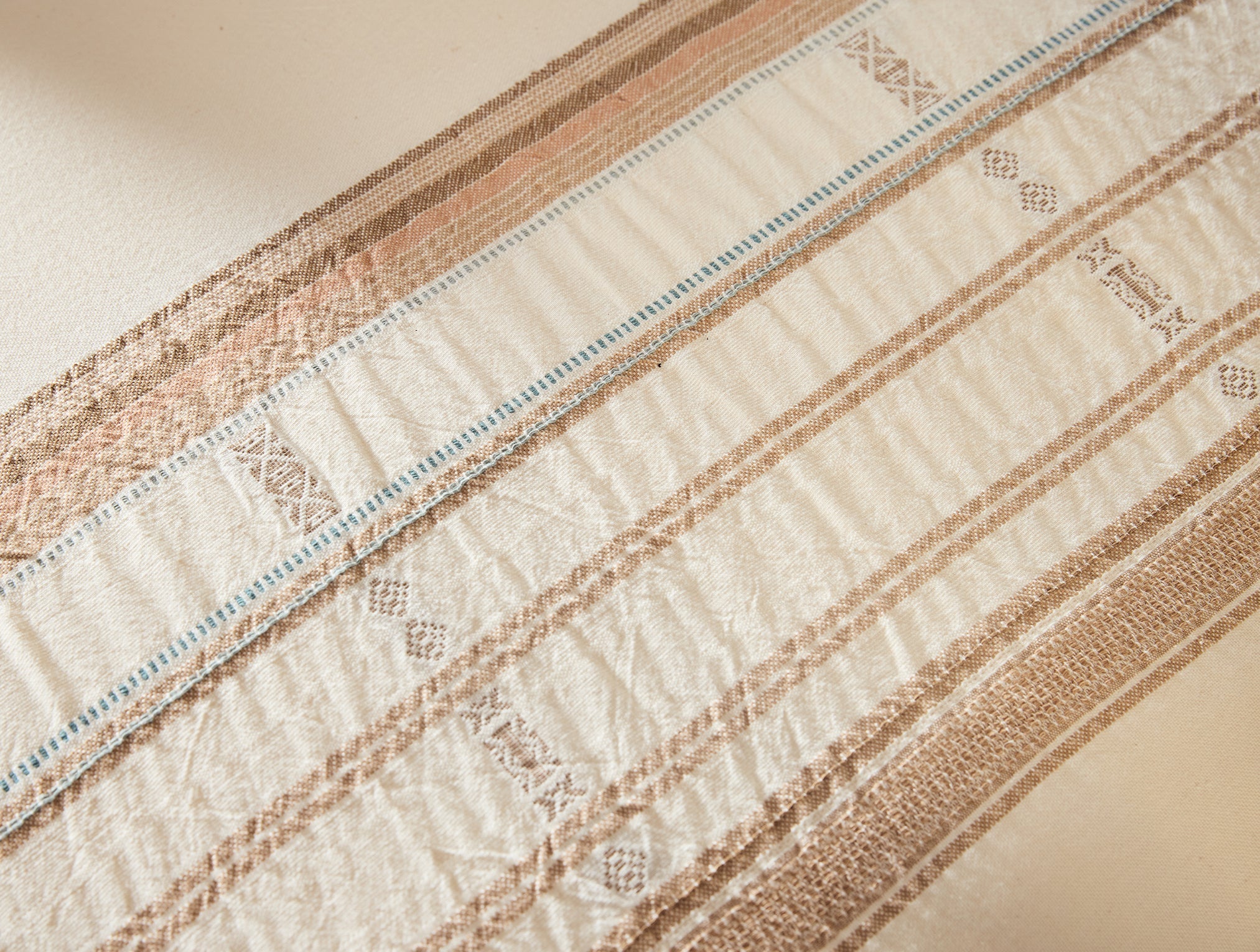 Reminiscent of the captivating textures and colors found in vintage Bashofu weavings, the Bodega Bay Organic Duvet Cover brings an artful essence to any bedroom. Woven on undyed, 100% organic cotton, this meticulously crafted duvet features a multi-colored dobby weave, accented with motifs of Fawn, Ginger, and Surf. The crisp, soft handfeel invites restful comfort that helps nourish and restore.