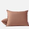 The Cambria Organic Sham features a multicolor embroidery pattern inspired by archival designs and the intricate motifs of Okinawan bashofu, an ancient Japanese weaving tradition. Showcasing nature-inspired hues of Doe, Undyed, and Praline and crafted from lightweight, 100% organic French linen, it’s both naturally soft, and safe for you and the planet.