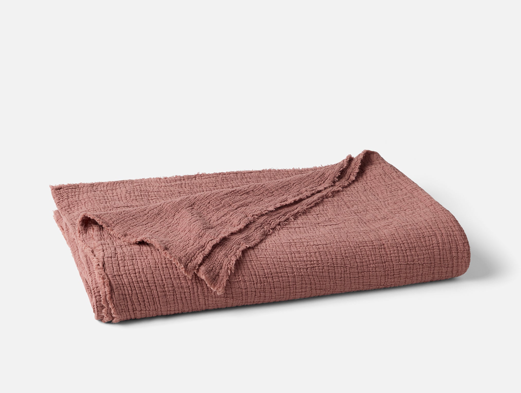 The soft, rippled weave of this bed blanket creates an airy, pliable shape that will expand and contract over time—much like the waves and breaks along the California coastline that inspired it. Each Topanga Coverlet is unique, woven from the purest organic cotton. This featherweight layer flows into waved edges, secured with a tiny zigzag stitch to hold the fringe in place.
