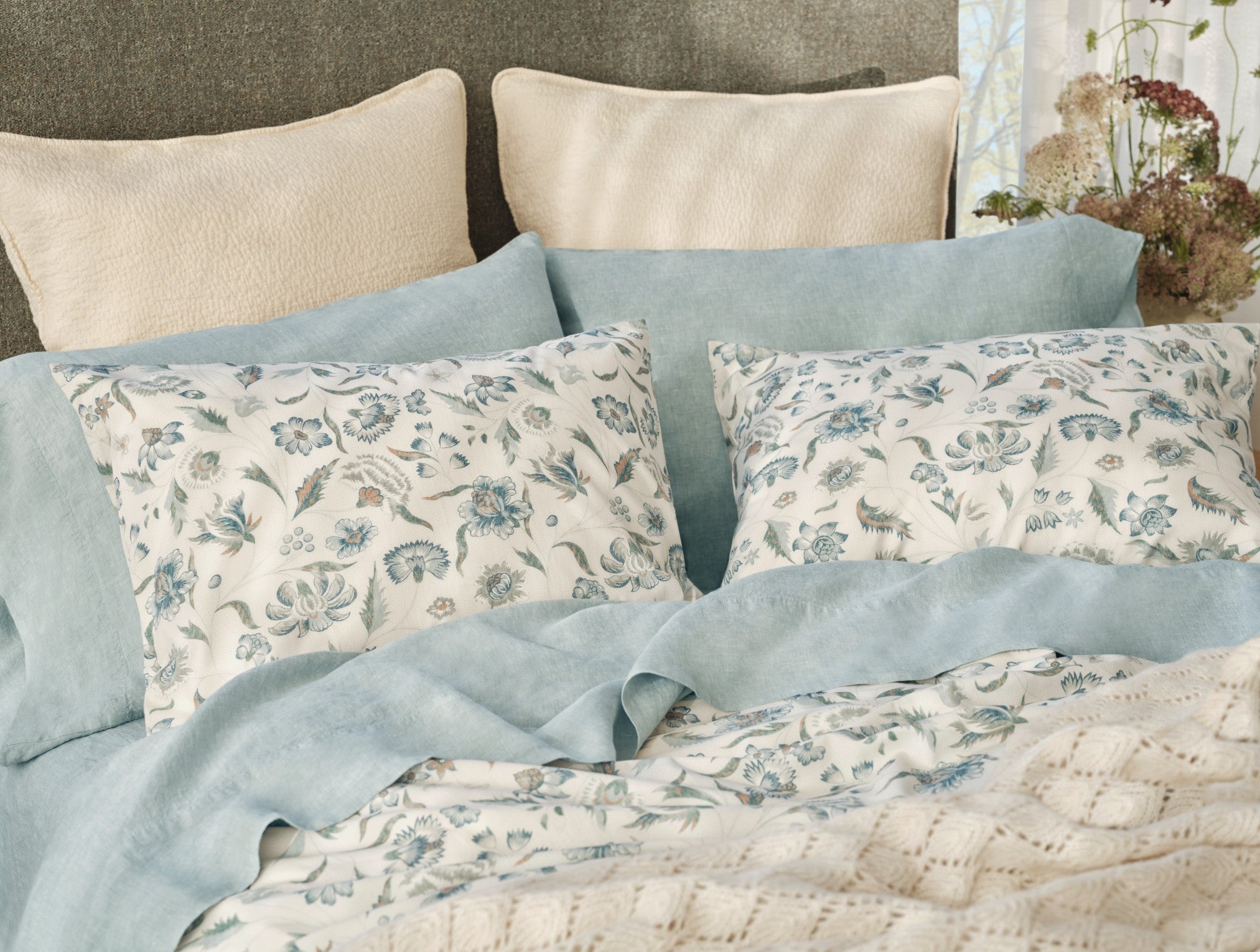 Inspired by traditional chintz woodblock textiles, the Viola Organic Print Sham features delicate floral motifs layered over a soft, dotted background. Crafted in Portugal from 100% GOTS certified organic cotton percale, it’s breathable, gentle on skin and a safer, healthier choice for your sleep space. Designed to pair seamlessly with the matching duvet, it brings an of-the-moment vintage touch to your bed.