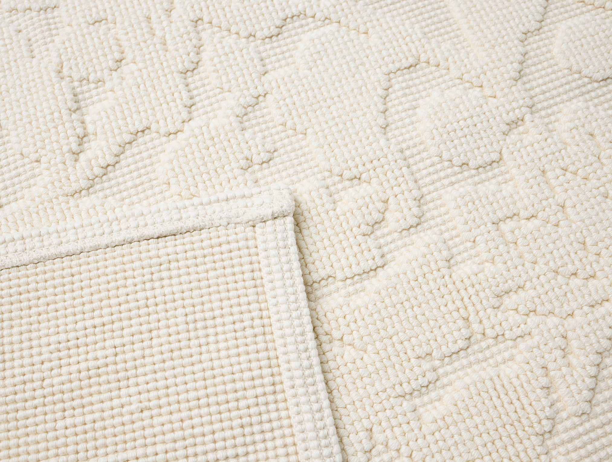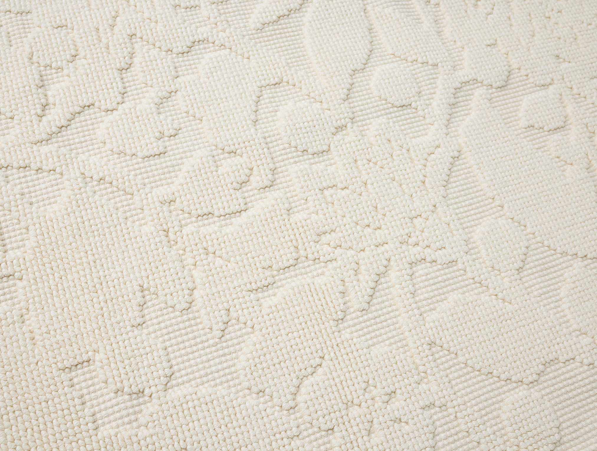 - Mid-century floral design crafted with high and low terry loops against a smooth flat weave.