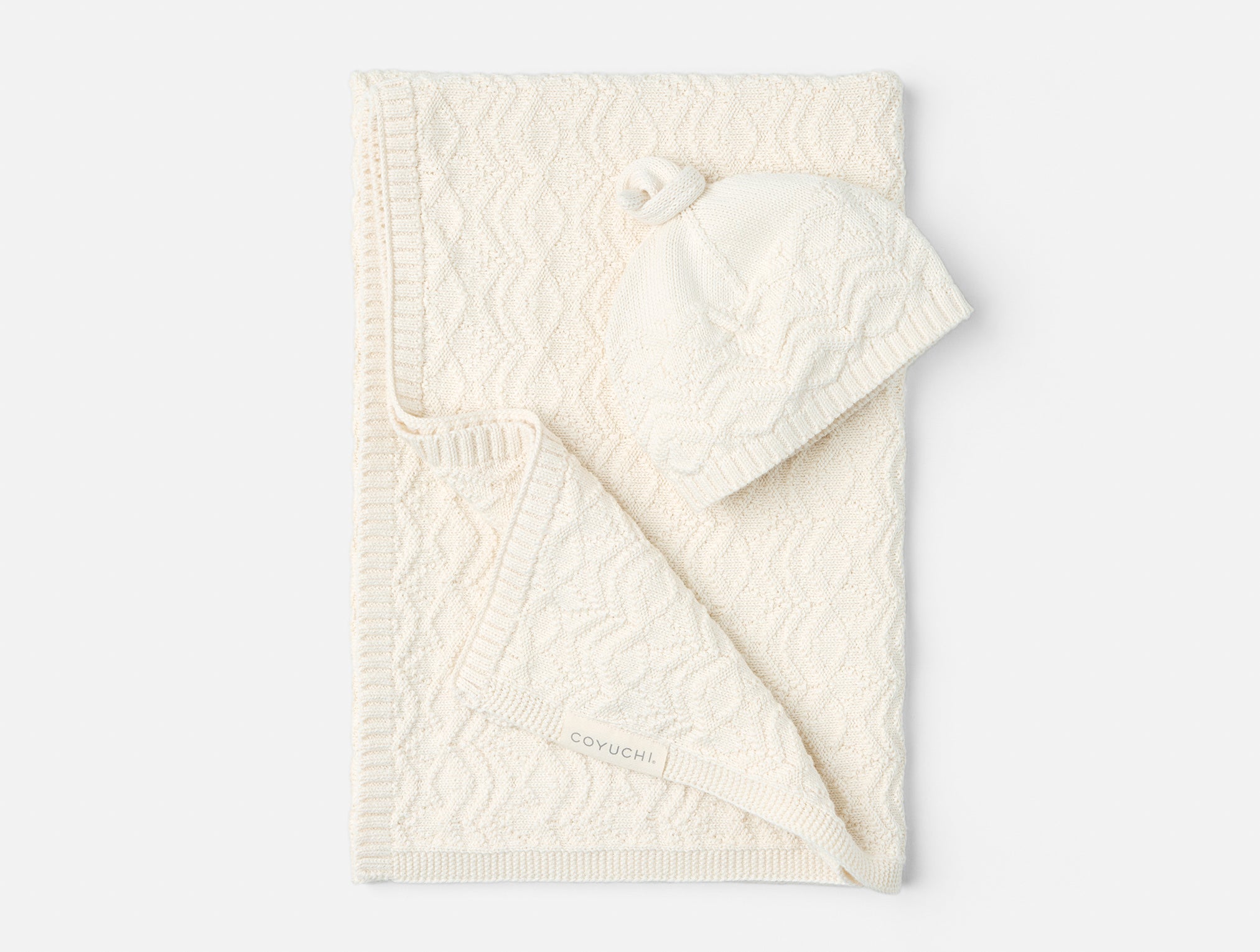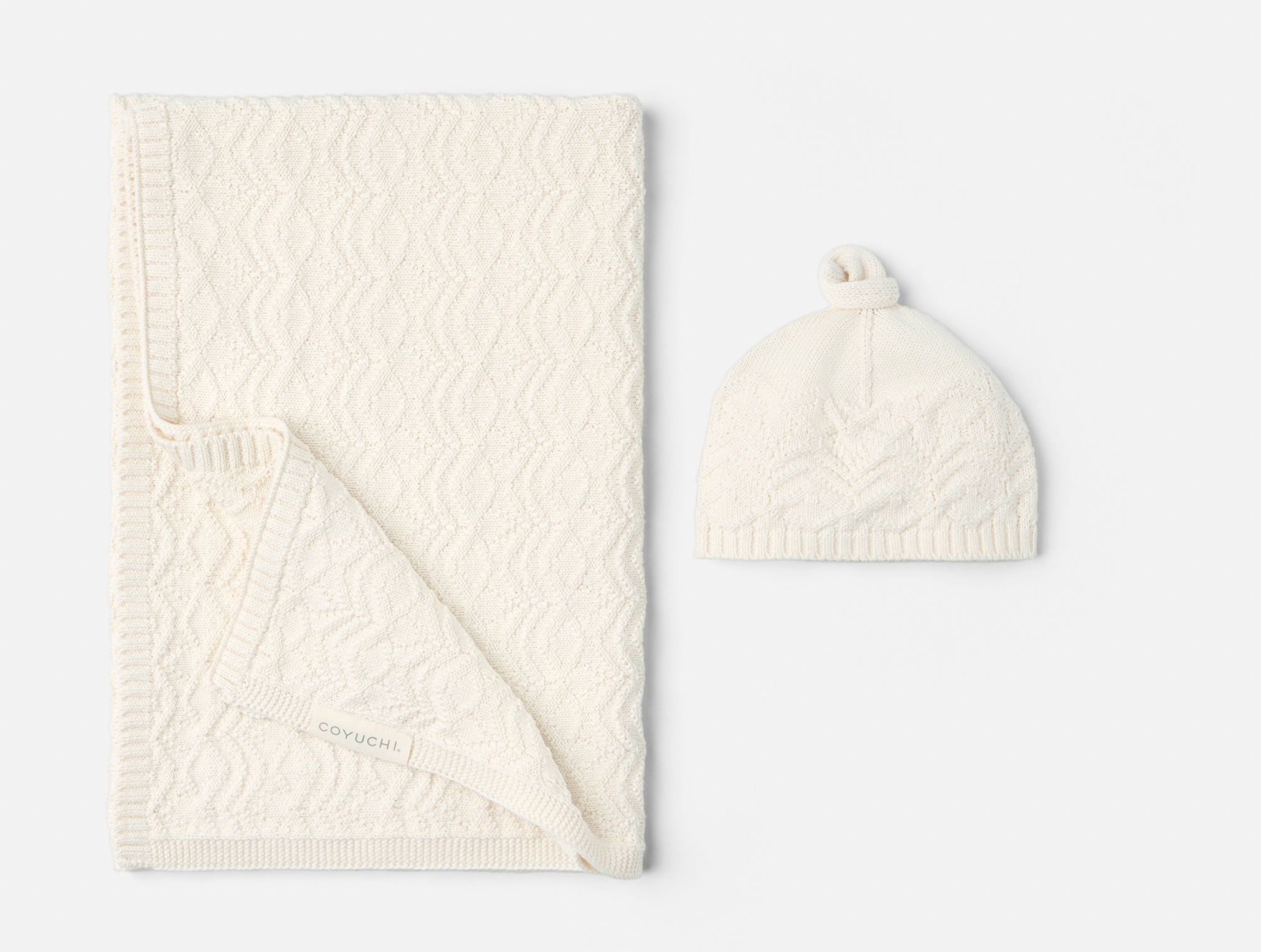 Give the gift of safer snuggles. Our Wren Organic Knit Baby Gift Set includes a soft, one-size-fits-most beanie and matching blanket—both made from 100% GOTS certified organic cotton and free from synthetics and harsh chemicals. The gentle knit is breathable and soft against delicate skin, while a novelty stitch and rib-knit hems add a sweet, cozy touch.